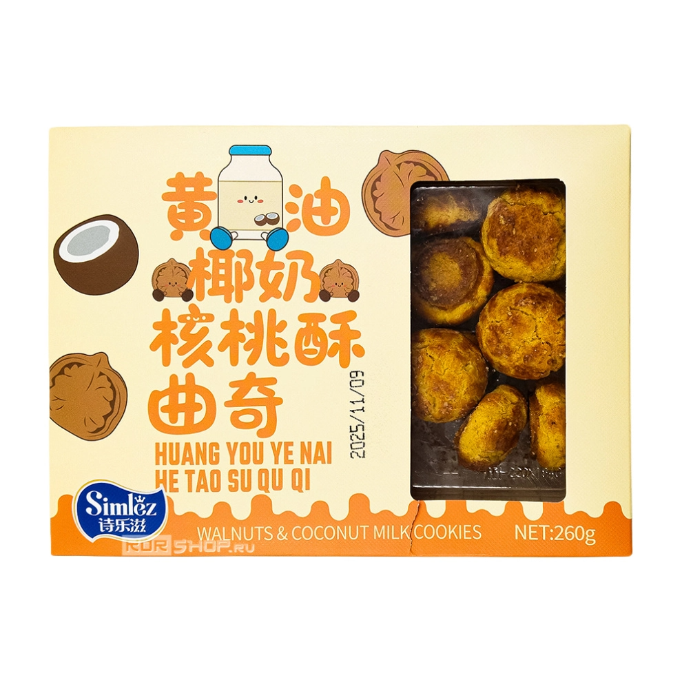 Песочное печенье с кокосовым молоком и грецким орехом Simlez, Китай, 260 г Акция