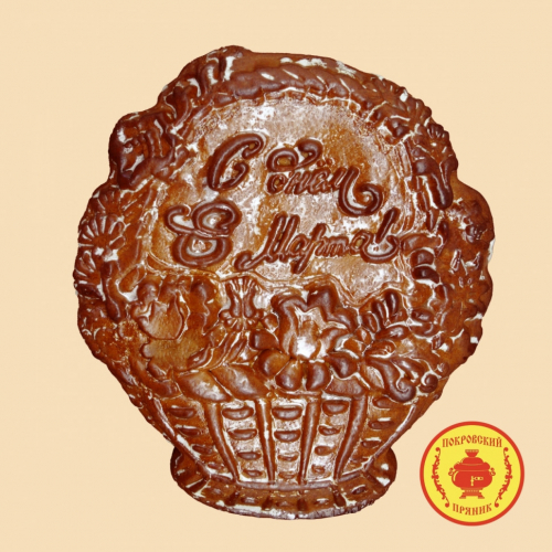 Пряник 600г шоколадный "Котик с тюльпанами" (в подарочной пластиковой упаковке)
