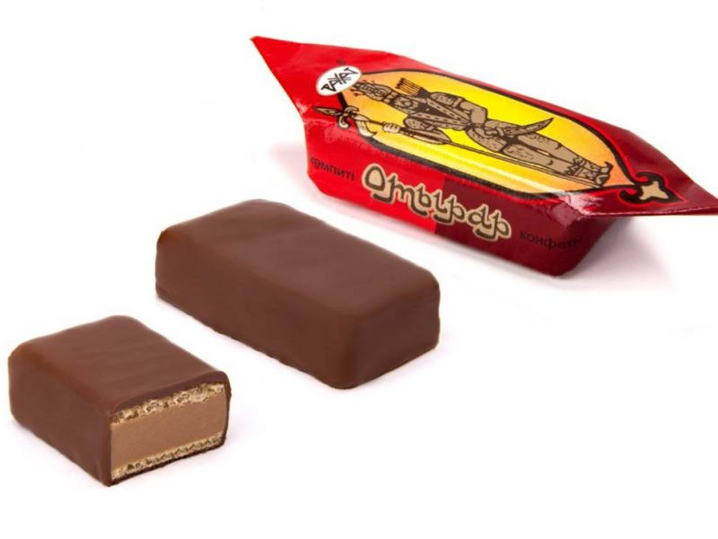 Пралине с добавлением какао порошка, с ароматом ванили между двумя слоями вафель, срок хранения: 6 месяцев.