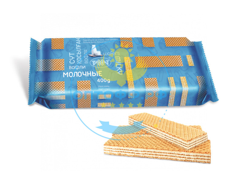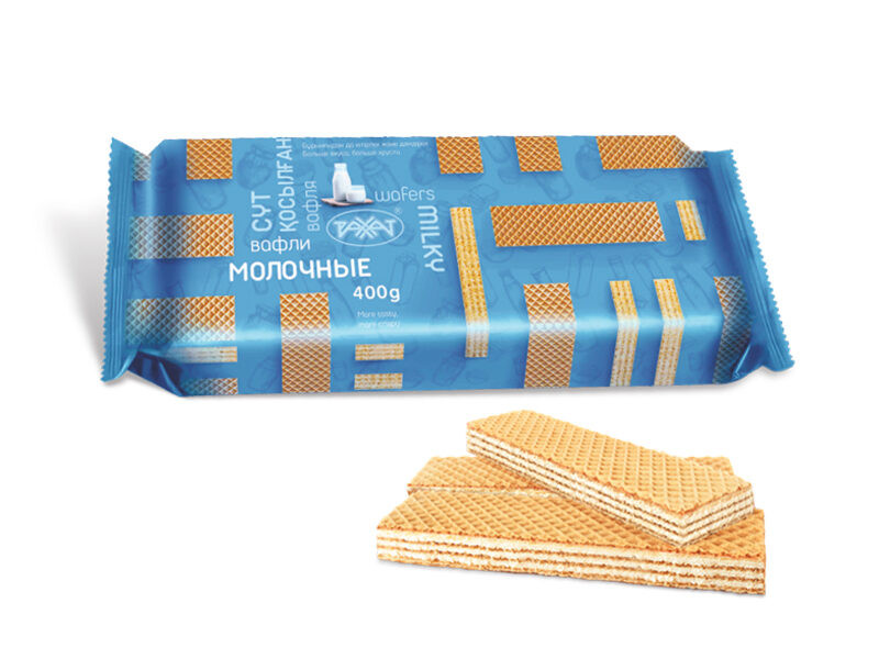 Вафли состоят из четырех слоев вафельных листов и трех слоев жировой начинки с молочным вкусом.