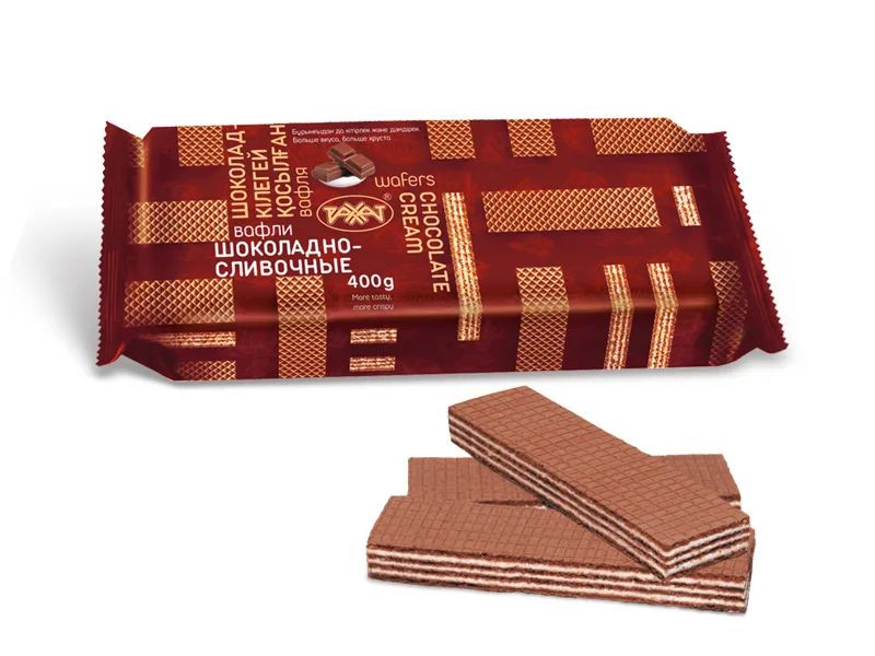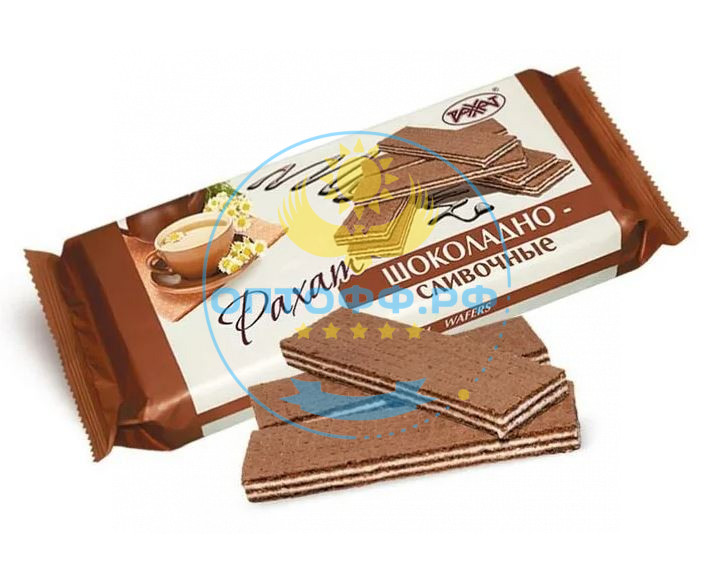 Вафли состоят из четырех слоев шоколадных вафельных листов и трех слоев жировой сливочной начинки.