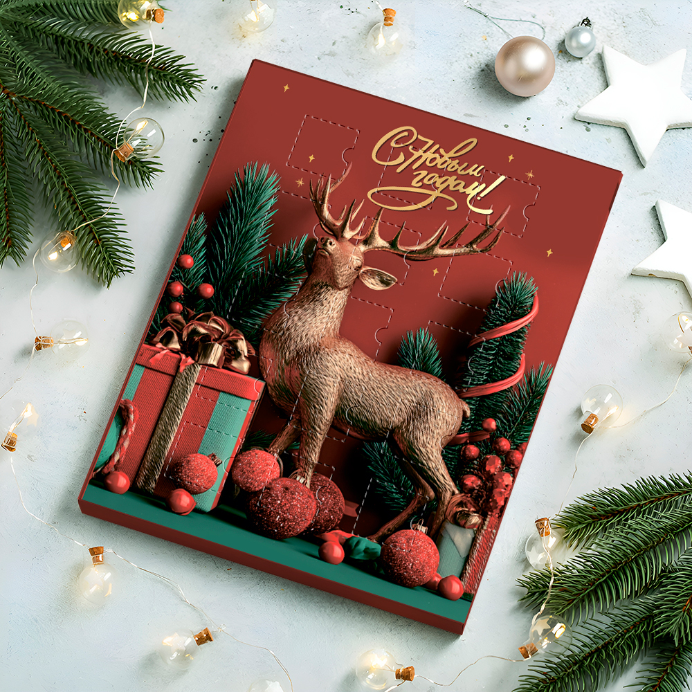 Адвент-календарь с шоколадом "С Новым годом (олень золотой)", 15 шт. по 5 г.