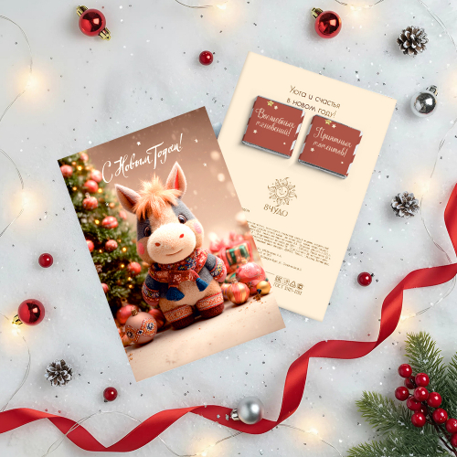 ★︎ Открытка 2 шоколадки "С Новым годом (Дед мороз с белой лошадью)"