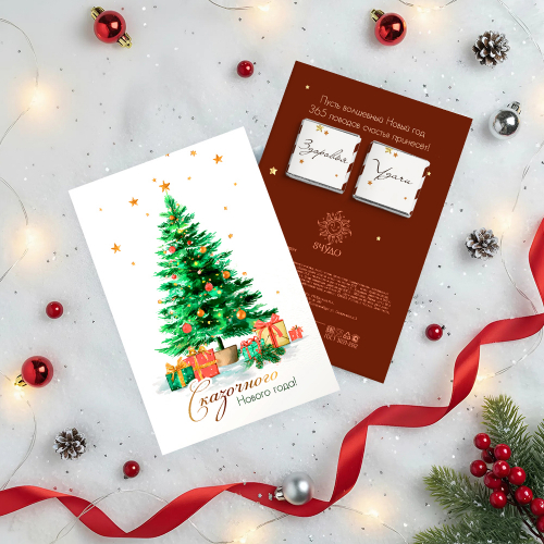 Открытка 2 шоколадки "Счастья, здоровья, любви в Новом году (машина)"