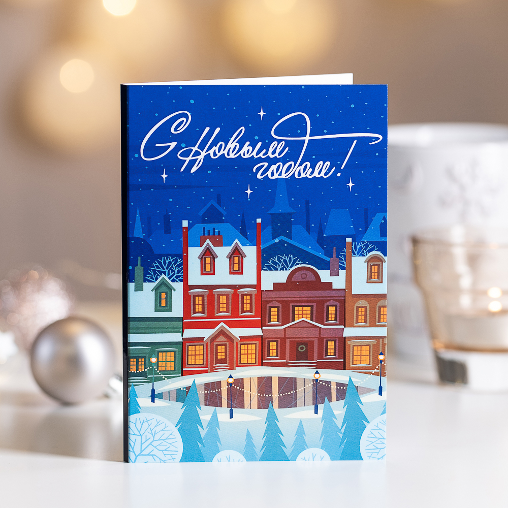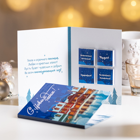 Открытка 4 шоколадки "С Новым годом (новогодний город)"