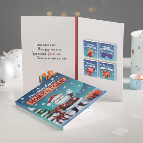 Открытка 4 шоколадки "счастливого нового года (санта и олень)"
