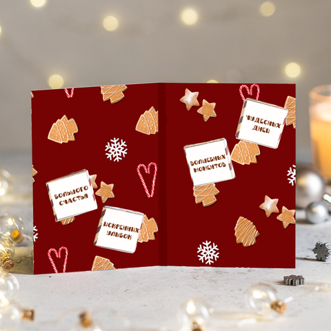 Открытка 4 шоколадки "Счастья в Новом году" (мишка в кружке)