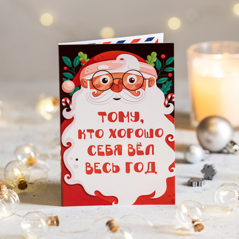 Открытка 4 шоколадки "Тому, кто хорошо себя вёл весь год"