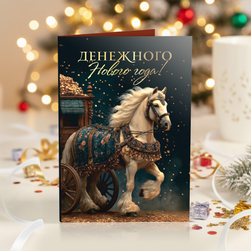 ★︎ Открытка 4 шоколадки "Волшебного Нового года (белая лошадка)"