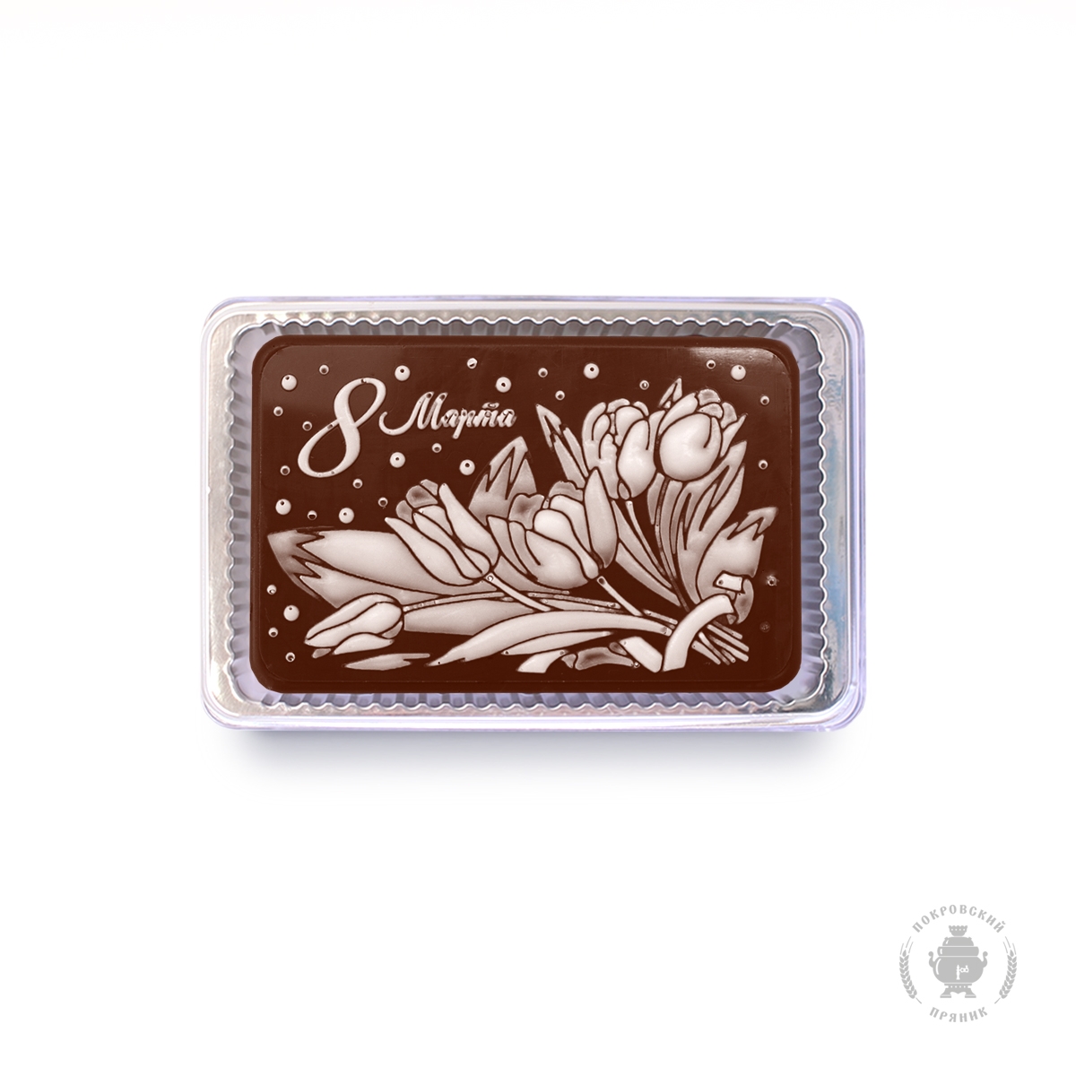 Традиционное тесто, изготовленное и выпеченное по старинным русским рецептам, покрывается слоем шоколадной глазури Премиум класса,на которую наносится тематический рисунок,