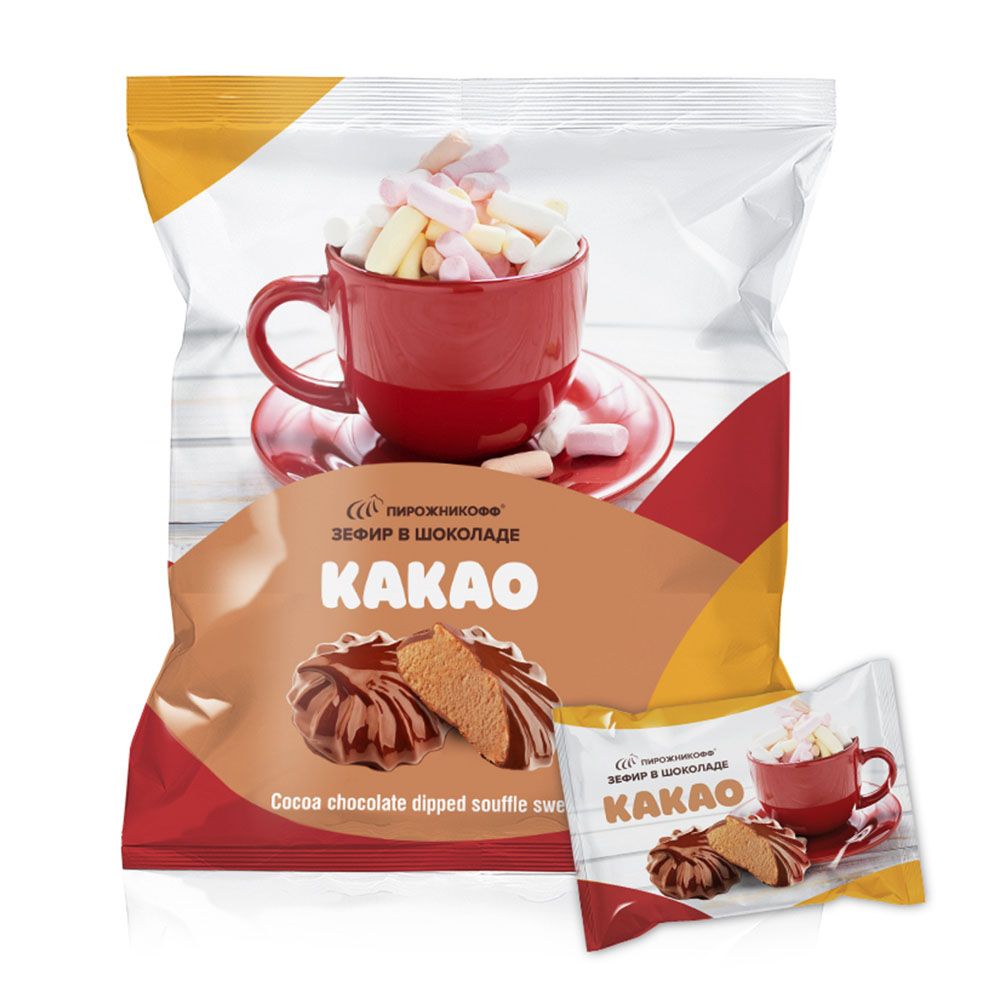 Хотите убедиться, что шоколад в шоколаде – это очень вкусно? Надо просто купить зефир с какао из коллекции кондитерской фабрики «Пирожникофф» и попробовать! Яркие, терпкие, выраженные тона темной шоколадной глазури великолепно оттеняют воздушную зефирную «начинку», в которую добавлен высококачественный какао-порошок.