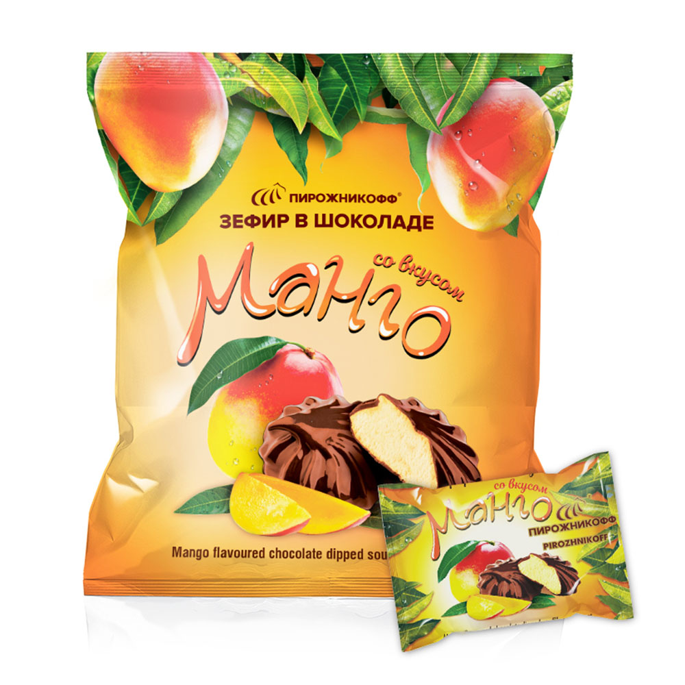 Манго - один из самых вкусных экзотических фруктов. Не зря его называют «королем фруктов». Его особенный вкус затрудняются описать даже гурманы. Откусывая сочную и спелую мякоть, можно уловить нотки персика и ананаса. Наши кондитеры постарались передать Вам всю многообразную палитру вкуса этого фрукта в нежном зефире от ТМ «Пирожникофф» - «Манго».