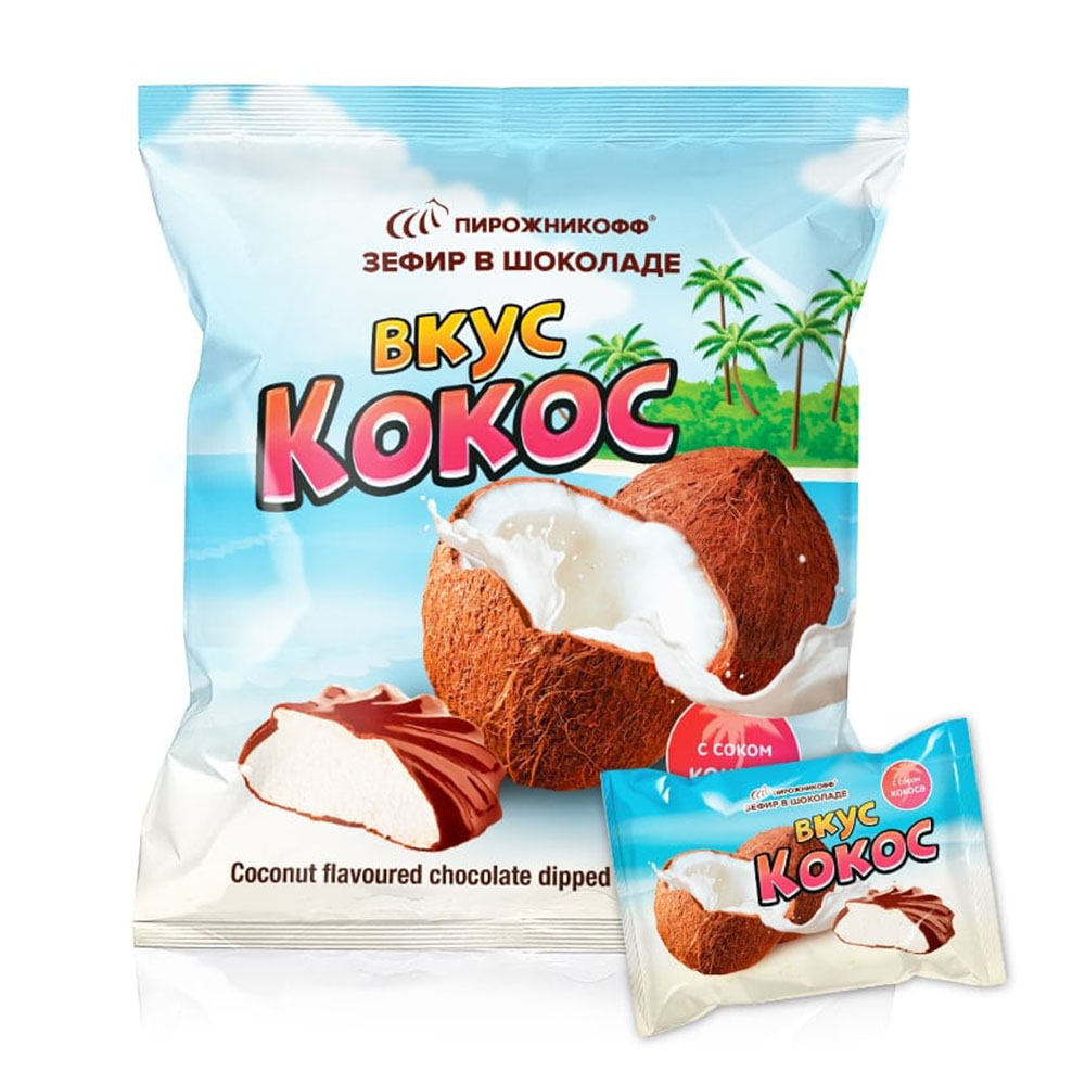 Восхитительный, самый узнаваемый вкус в мире. Мякоть этого ореха используют почти во всех кулинарных блюдах. Особенно гармонично вкус кокосового ореха раскрывается в кондитерских изделиях. Так на свет появился зефир «Кокос» ТМ Пирожникофф.
