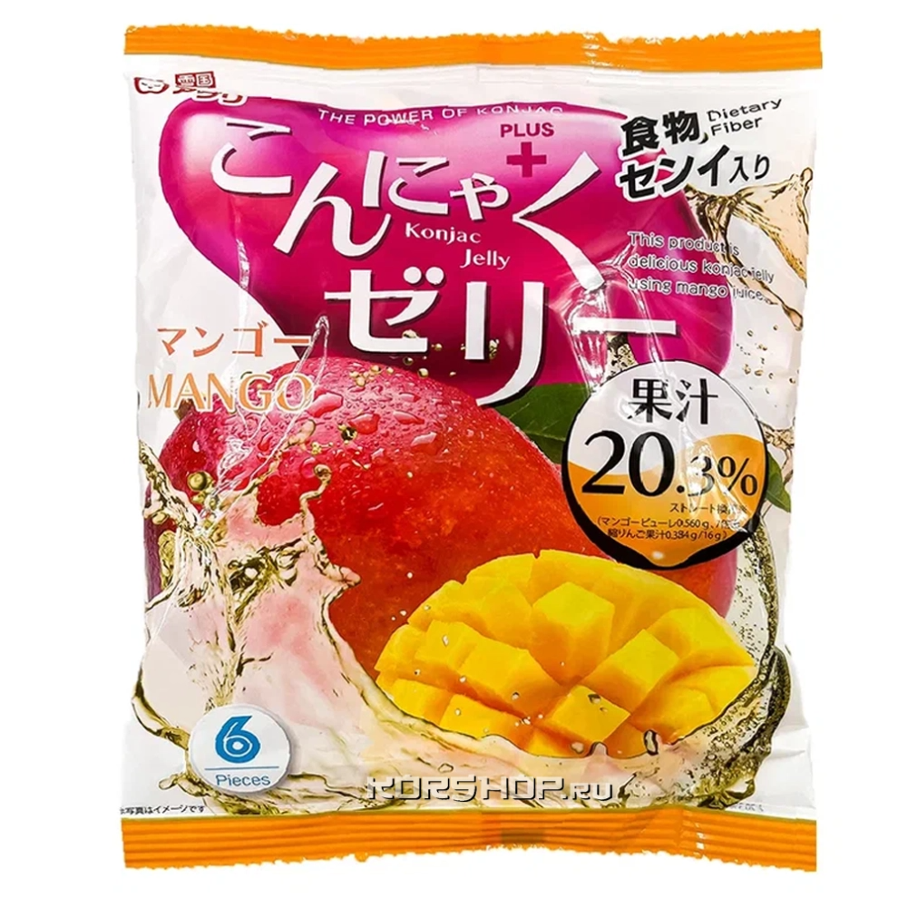 Желе конняку со вкусом манго Yukiguni Aguri, Япония, 96 г (16 г*6шт) Акция