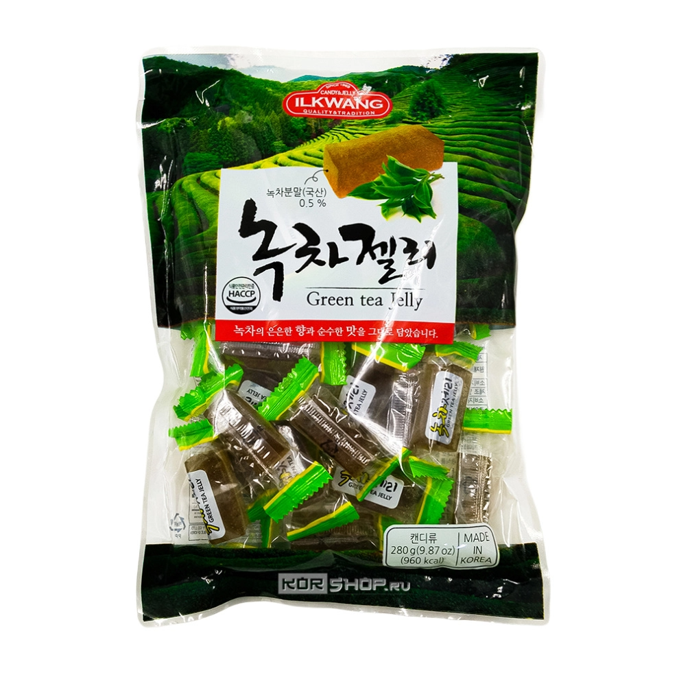 Желейные конфеты со вкусом зеленого чая Green Tea Jelly Ilkwang, Корея, 280 г Акция