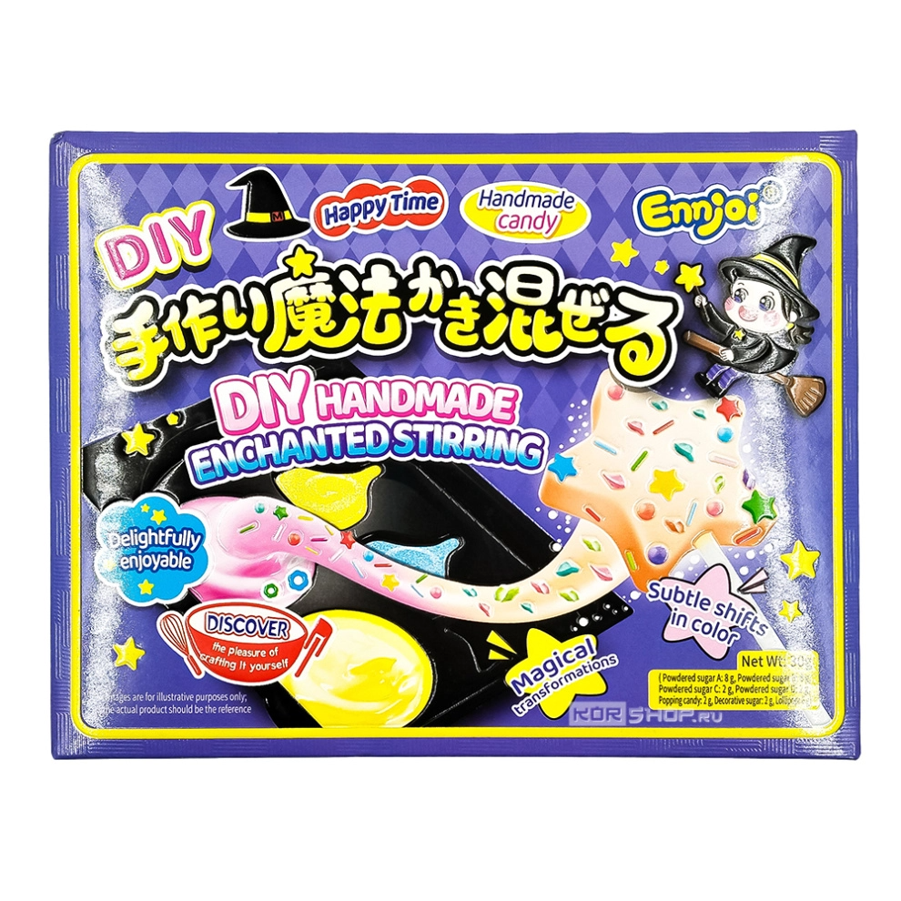Жевательная конфета «Сделай сам: Волшебный переполох» Enchanted Stirring Guandong Lefen – это удовольствие «два-в-одном» для детишек, которое дарит незабываемые моменты наслаждения творчеством и, как результат, вкусную награду. Малыш приготовит лакомство собственными руками – увлекательнейшая игра, похожая на волшебство. В процессе приготовления конфеты сладость будет несколько раз менять свой цвет, зачаровывая ребенка и создавая у него ощущение причастности к магическому искусству. На упаковке размещены картинки, подробно иллюстрирующие каждый этап приготовления жевательной конфеты.
