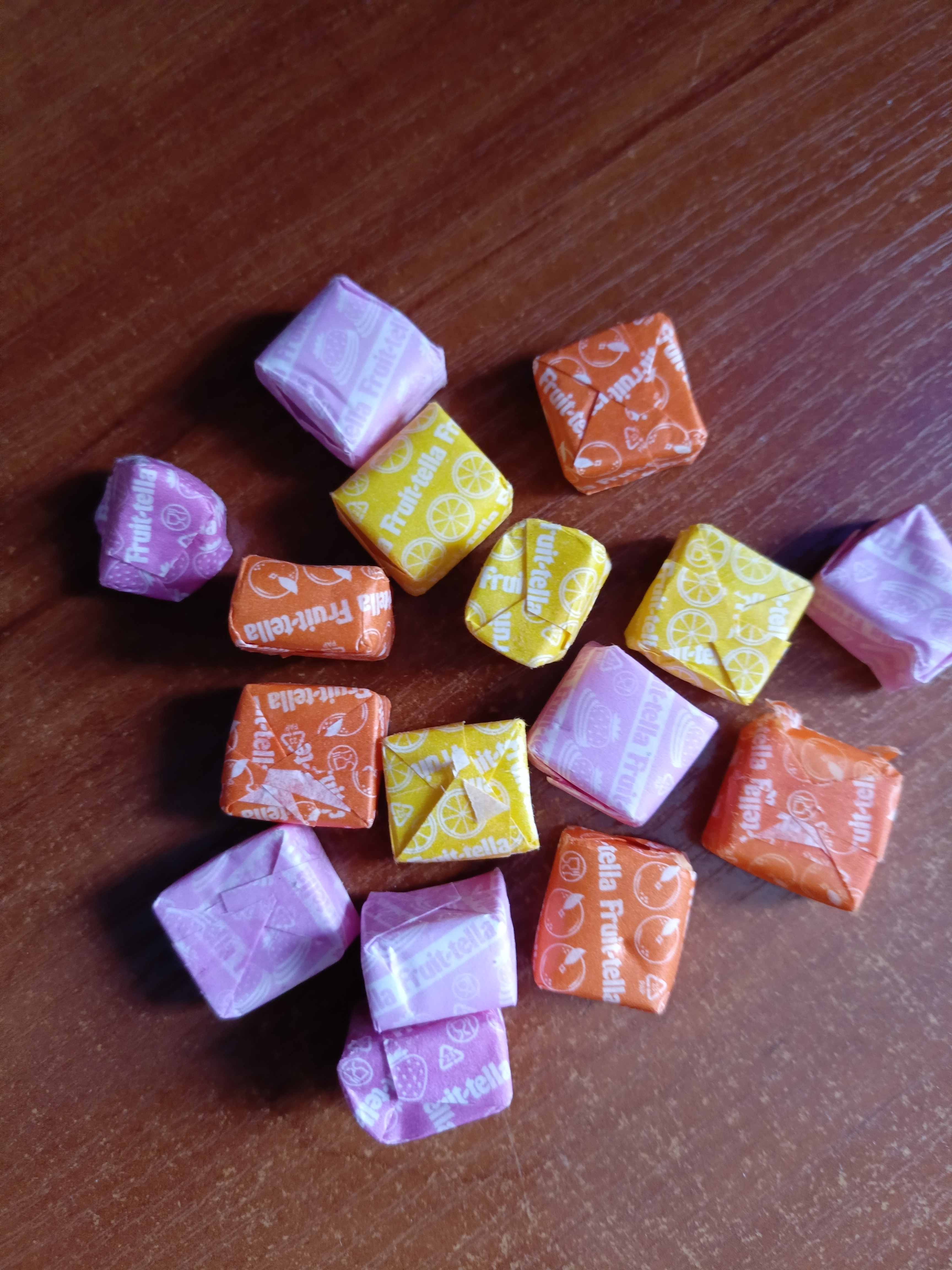 Обычная фрутелла, только россыпью. Все конфетки пришли чистые и аккуратные, как будто из упаковки. В основном были клубника, лимон, клубника - йогурт, апельсин