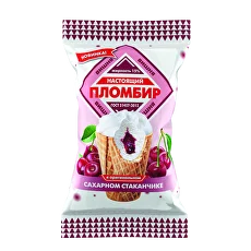 ПЛОМБИР В САХАРНОМ СТАКАНЧИКЕ С ФРУКТОЯГОДНЫМ НАПОЛНИТЕЛЕМ ВИШНЯ