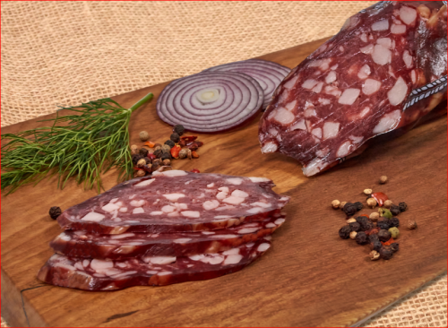 Создается из отборной говядины и свинины по особой технологии, в результате чего обладает нежным ароматом ферментированного мяса.