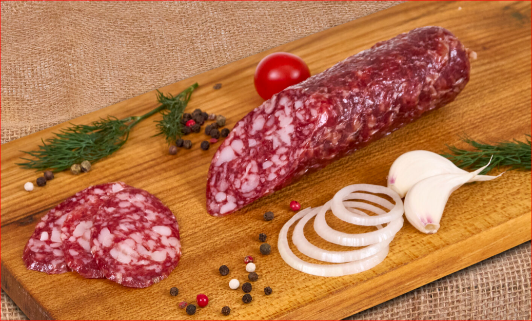 Технология холодного копчения. Насыщенный вкус. Отборное мясо и ароматные специи в великолепном сочетании с ноткой копчения. С плотной структурой и мраморным рисунком