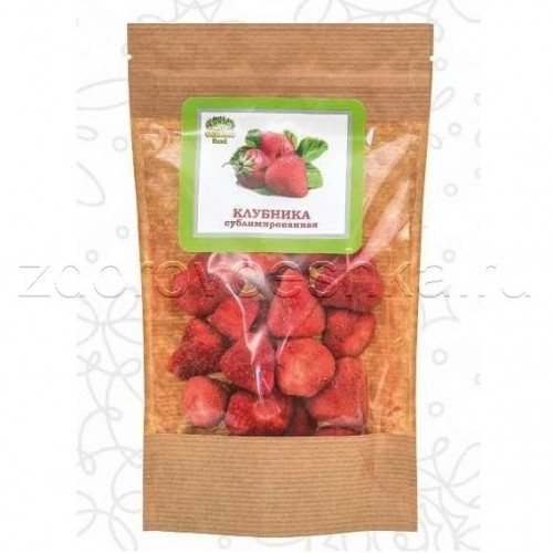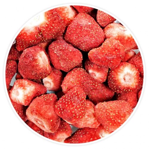 Натуральная клубника, высушенная способом сублимации. Сохранила при этом все полезные вещества, витамины и микроэлементы.