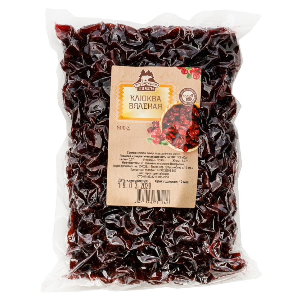 Артикул: 41150; Вес: 0.51 кг; Cрок годности: 12 месяцев; Состав: клюква, сахар, подсолнечное масло.; Условия хранения: Хранить при температуре от 0 до 20 градусов при относительной влажности не более 75%.; Пищевая и энергетическая ценность на 100 г: 308 ккал, белки 0,07 г, жиры 1,37 г, углеводы 82,36.