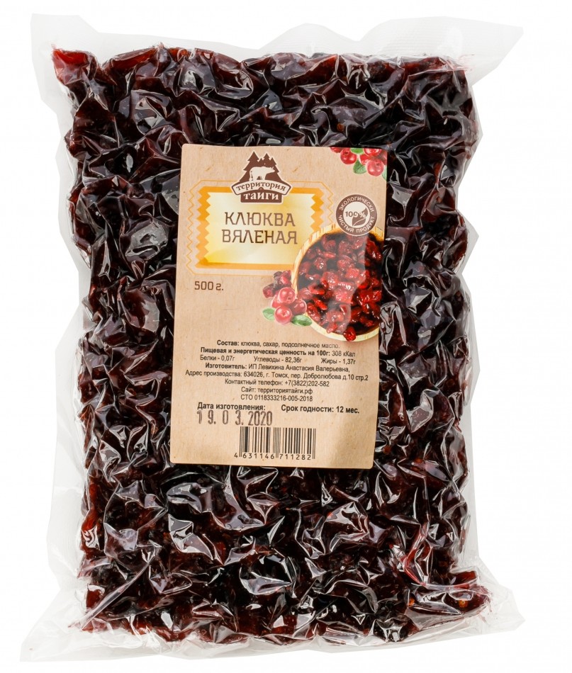 Cрок годности: 12 месяцев; Состав: клюква, сахар, подсолнечное масло.; Условия хранения: Хранить при температуре от 0 до 20 градусов при относительной влажности не более 75%.; Пищевая и энергетическая ценность на 100 г: 308 ккал, белки 0,07 г, жиры 1,37 г, углеводы 82,36.