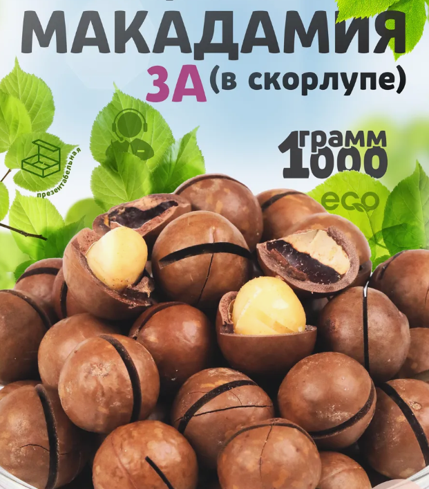 Макадамия очень вкусная и свежая, по размеру средняя и иногда крупные орехи есть. Только один минус - съедается за несколько дней))