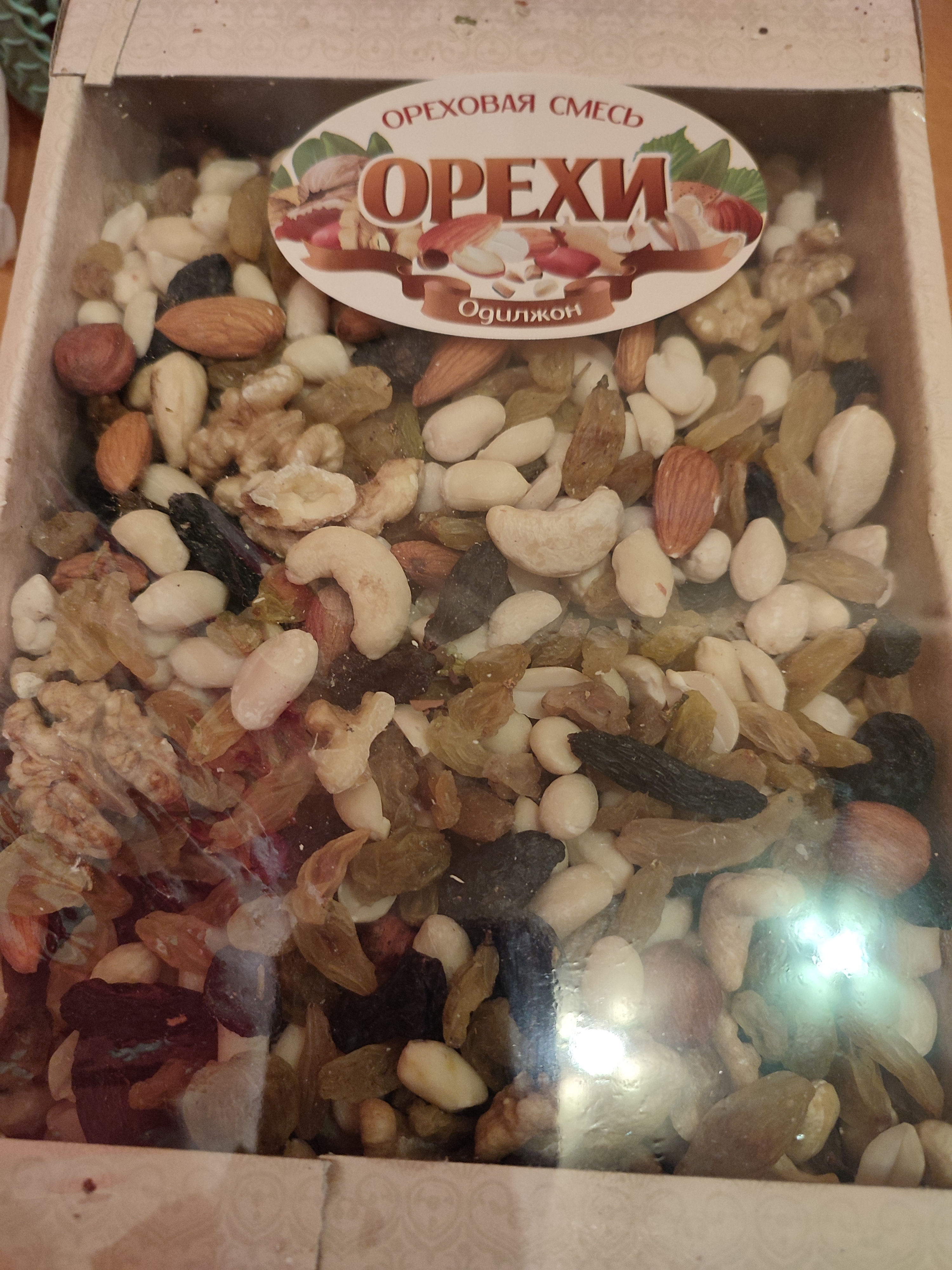 Получила ореховую смесь 1 кг, одно название "ореховая смесь", в данной смеси присутствует немного, где-то 100-150 грамм орехов, а остальное изюм. В общем полнейший обман, заказывать больше не буду.
