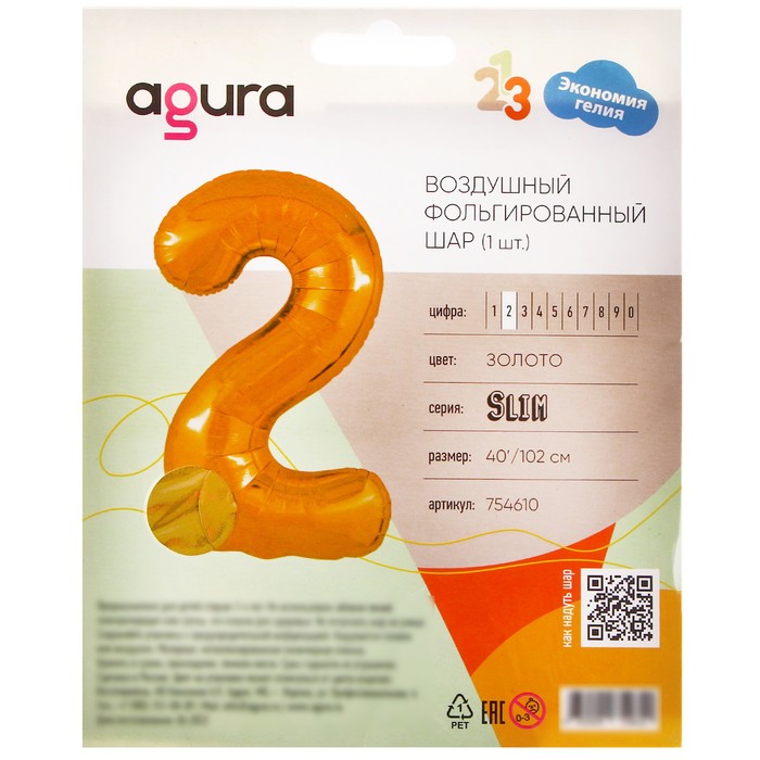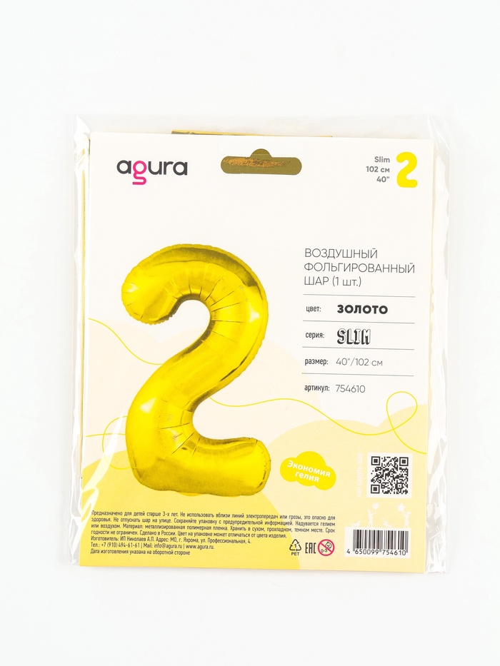 Воздушный шар фольгированный 40" «Цифра 2»