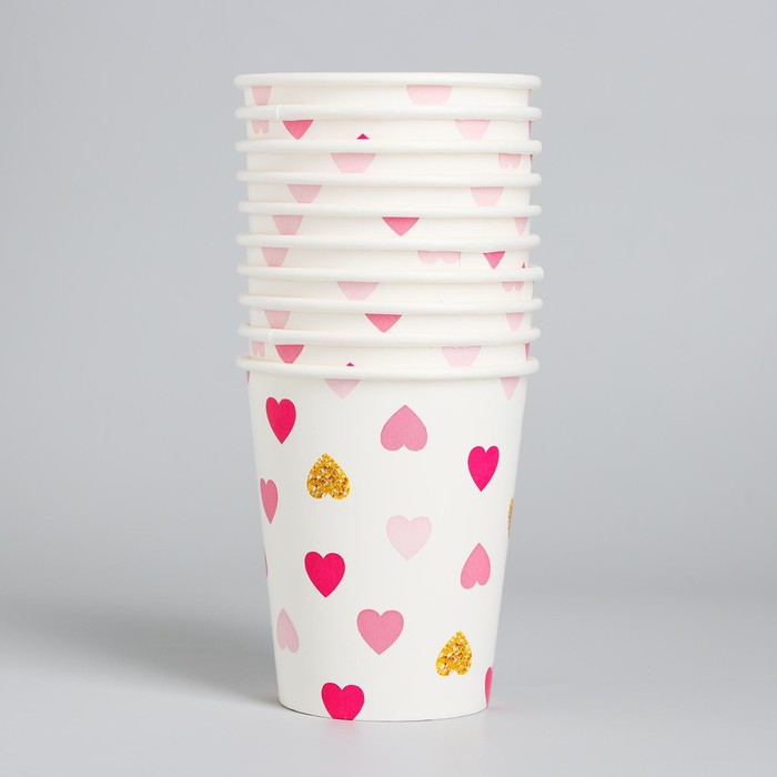 Стакан одноразовый бумажный «Сердца», 250 мл