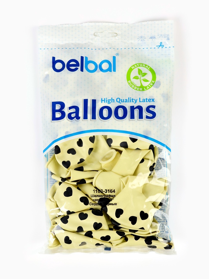Воздушные шары латексные 14" «Черные сердца», 25 шт.