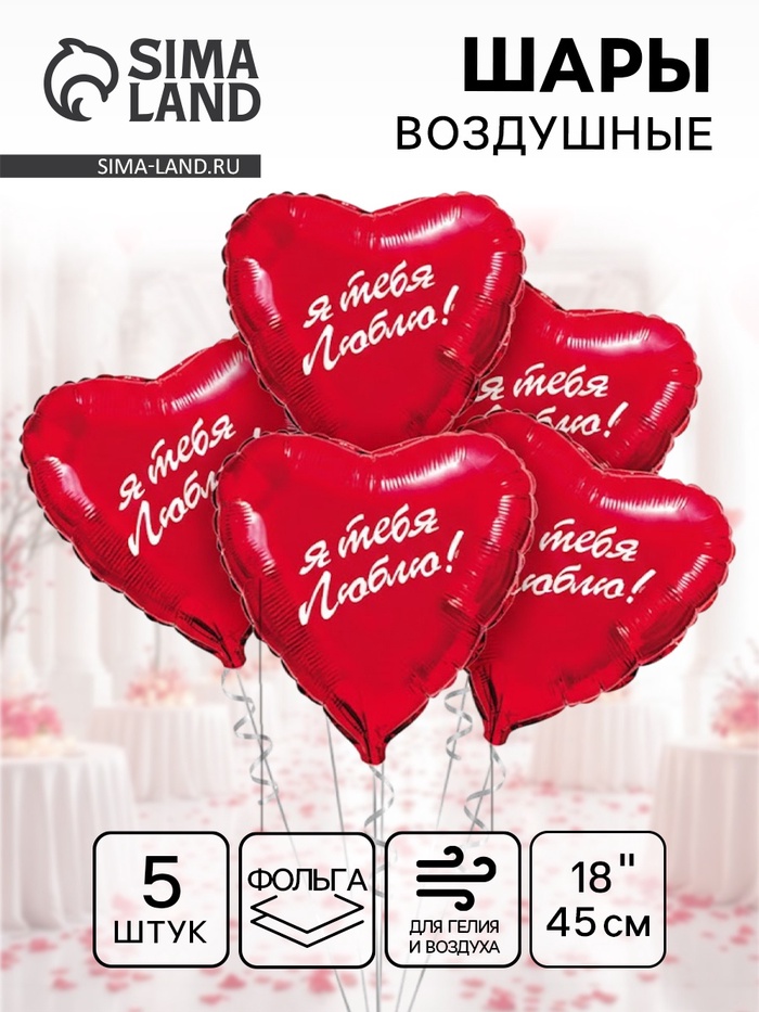 Воздушный шар фольгированный 18" «Я тебя люблю», сердце, 5 шт.