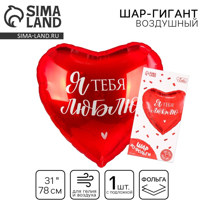 Воздушный шар фольгированный 31" «Люблю», сердце, с подложкой