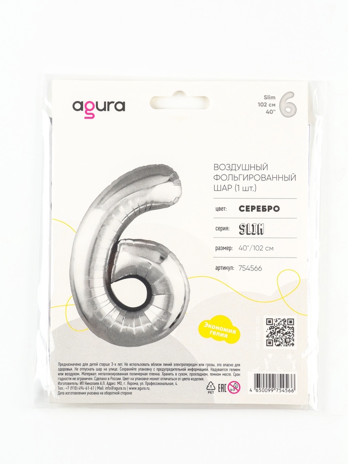 Воздушный шар фольгированный 40" «Цифра 6»