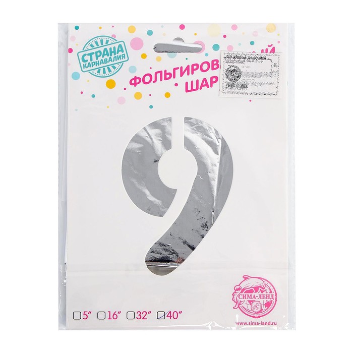 Воздушный шар фольгированный 40" «Цифра 9»