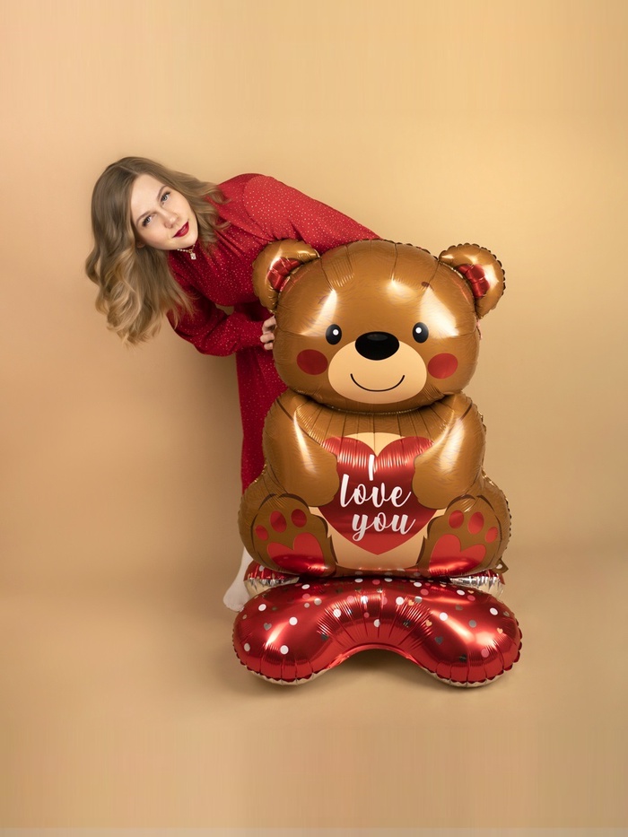 Воздушный шар фольгированный 58" «Медведь с сердцем», под воздух