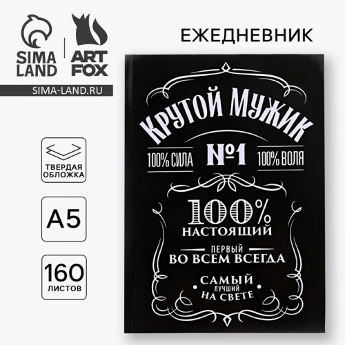 Ежедневник А5, 160 листов, в твердой обложке «Крутой мужик»