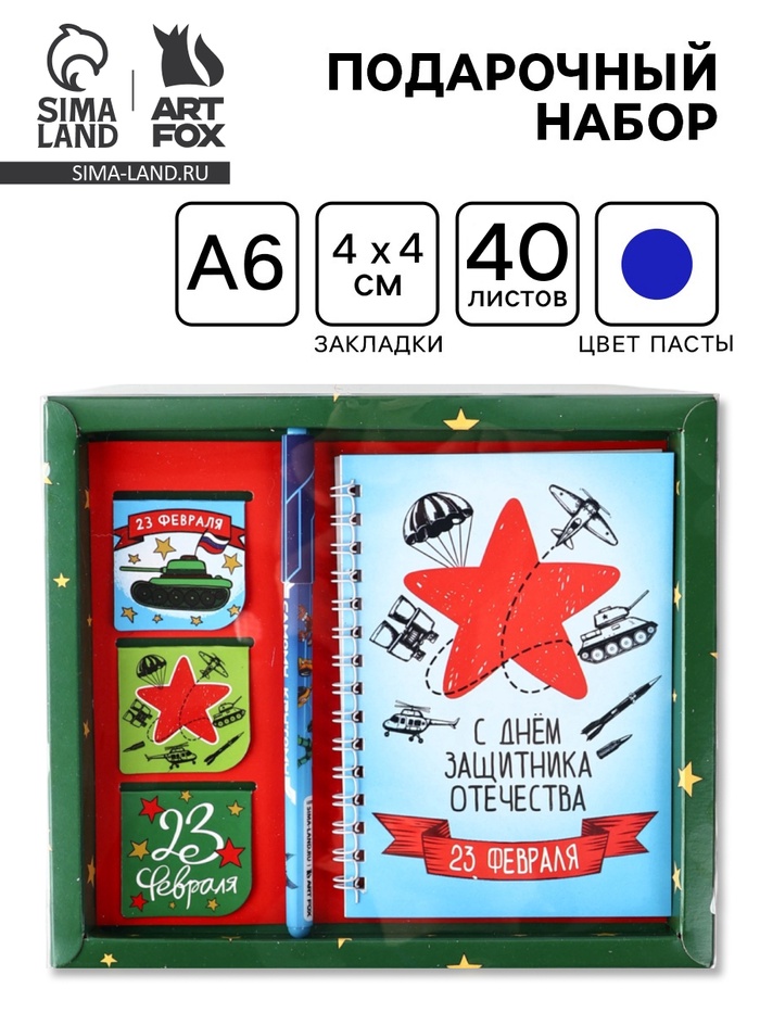 Подарочный набор: Блокнот А6, 40 л., магнитные закладки, ручка «С днем защитника отечества»