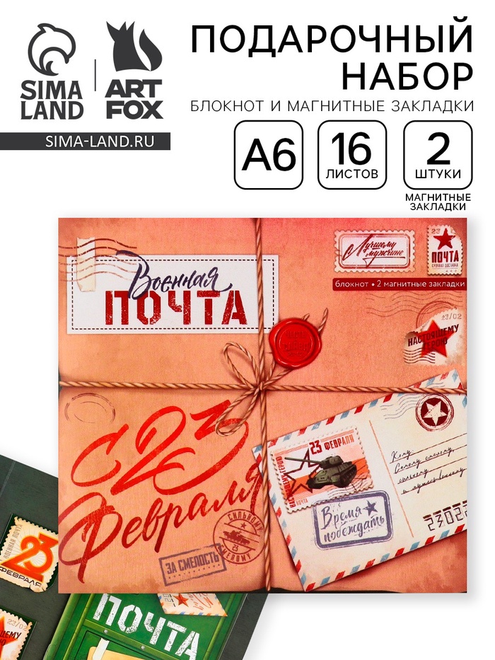 Подарочный набор, блокнот и магнитные закладки 2 шт. «Военная почта. 23 февраля»