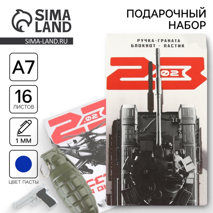 Подарочный набор: блокнот, ручка-фигурная и ластик «23 февраля Танк»