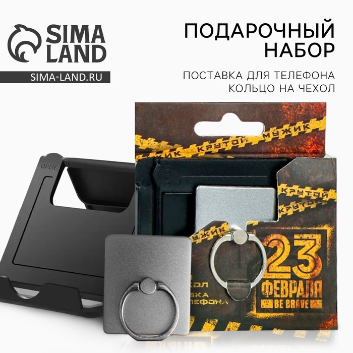 Подарочный набор «Крутому мужику. 23 февраля», подставка для телефона и кольцо на чехол