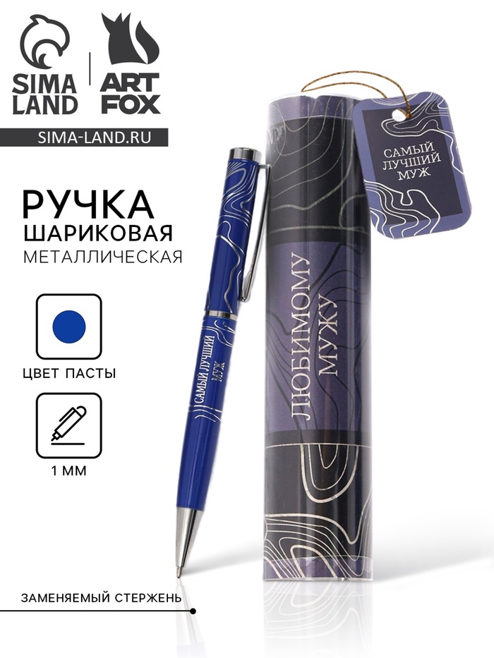 Ручка металлическая в тубусе «Любимому мужу», синяя паста