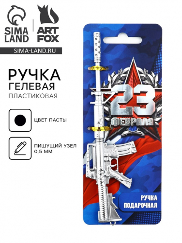 Ручка прикол, гелевая, пистолет, пластик, на подложке «23 февраля, настоящий защитник»