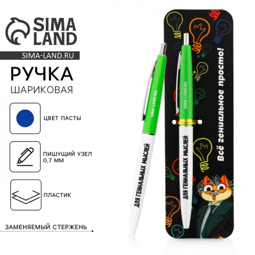 Ручка шариковая, синяя паста автоматическая 0.7 мм пластик «Всё гениальное - просто!»