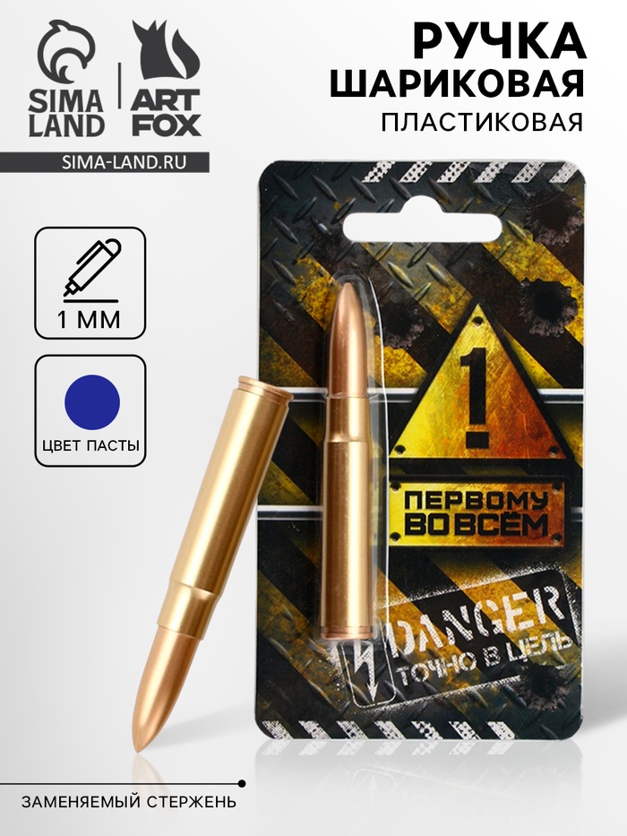 Ручка шариковая, синяя паста, пластик, пуля, на подложке «Первому во всём»