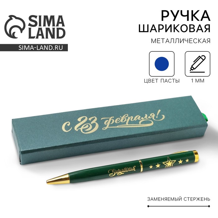 Ручка шариковая, в футляре, металл,1.0 мм, синяя паста «С 23 Февраля!»