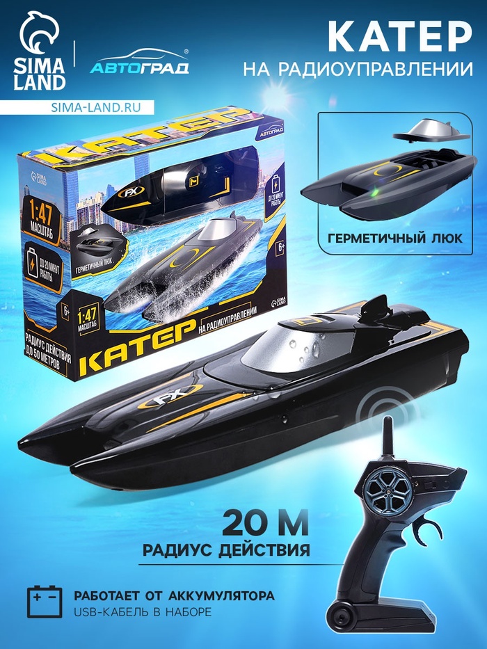 * Катер работает от аккумулятора ёмкостью в 650 mAh.