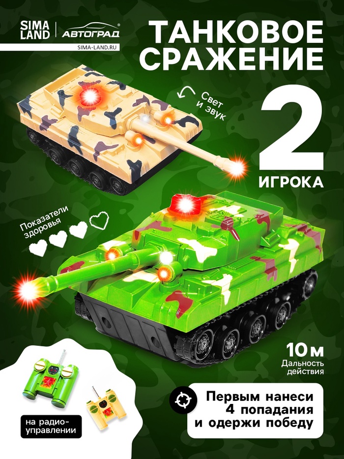 Танковый бой «Танковое сражение», на радиоуправлении, 2 танка, свет и звук