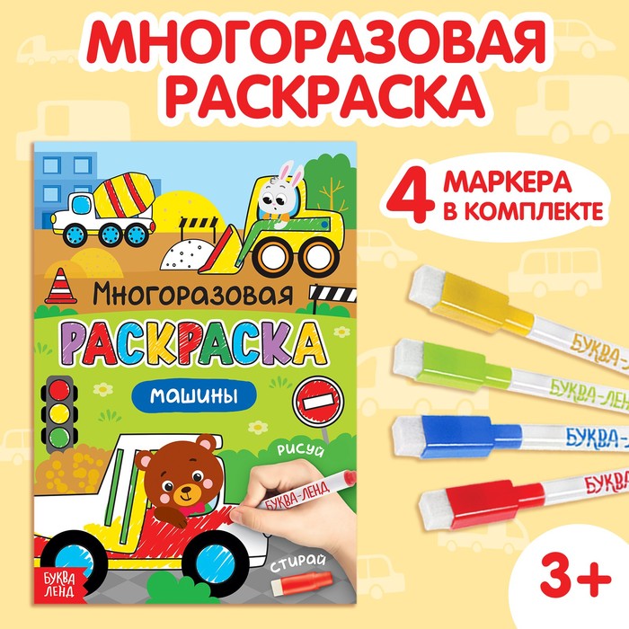 Раскраска многоразовая «Рисуй-стирай. Машины» — это увлекательный набор для детей, который поможет развить творческое мышление и мелкую моторику.